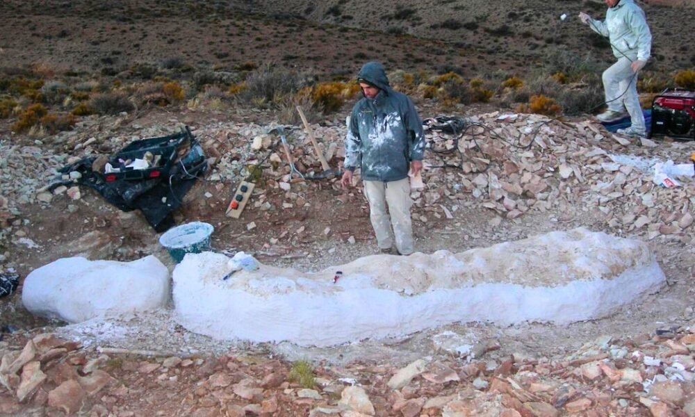 El hallazgo de un hueso gigante en el noroeste de Chubut llevó al descubrimiento de una nueva especie de dinosaurio (MEF) En un rincón remoto del...