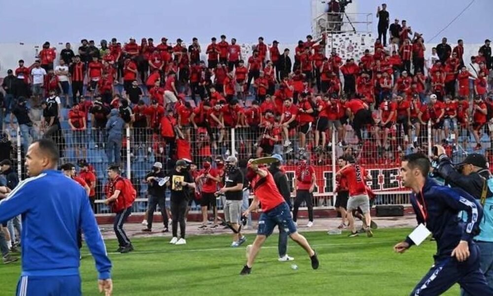 La invasión al campo de los aficionados durante la vuelta de semifinales de la Copa Confederación de la CAF entre el Olympique Safi (Marruecos) y el...