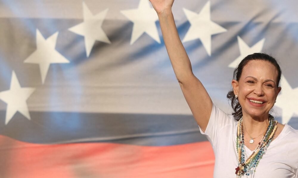 La líder opositora venezolana María Corina Machado habla ante simpatizantes durante un acto multitudinario en Madrid, España (REUTERS/Isabel Infantes) La líder opositora y premio Nobel de...