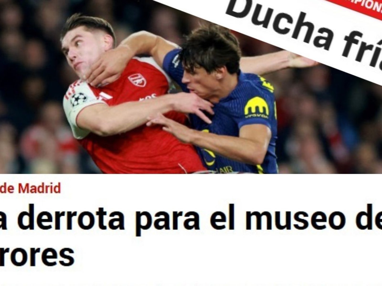 Para AS, lo del Atlético en Londres fue «una ducha fría». El medio madrileño describió cómo el Arsenal «arrolló» a los de Simeone en la segunda mitad con cuatro goles en apenas 13 minutos, impulsado por un Gyökeres imparable que, ironías del destino, había sido pretendido por los colchoneros en el último mercado.