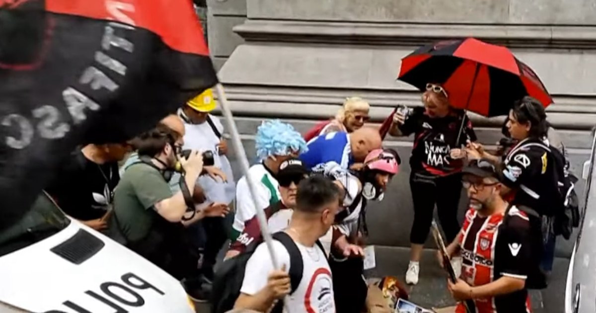 La marcha, por ahora, consiste en la tradicional vuelta al histórico edificio del Congreso Nacional, y busca concretar un semaforazo en la esquina de Entre Ríos e Irigoyen. En ese contexto se registró una violenta escena, cuando uno de los manifestantes, un hombre mayor intentó protestar en la calle. Cuando un grupo de policías se lo impidió, él les reprochó airadamente su actitud. Allí, uno de los policías, de un porte mayor, lo empujó con fuerza y el hombre cayó pesadamente al suelo. La escena generó indignación entre quienes participaban de la marcha, aunque afortunadamente no escaló. Todo se produjo sobre la calle Irigoyen, en uno de los laterales del Congreso, por donde suelen ingresar los senadores nacionales.