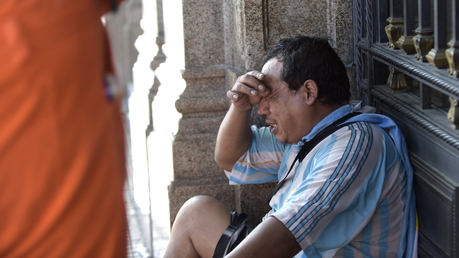 La intención de lanzar agua es para que se alejen de las vallas y no se generen conflictos cuerpo a cuerpo. De momento, algunos se refugian en una bandera de Argentina. Mientras que otros cantan “la patria no se vende”.