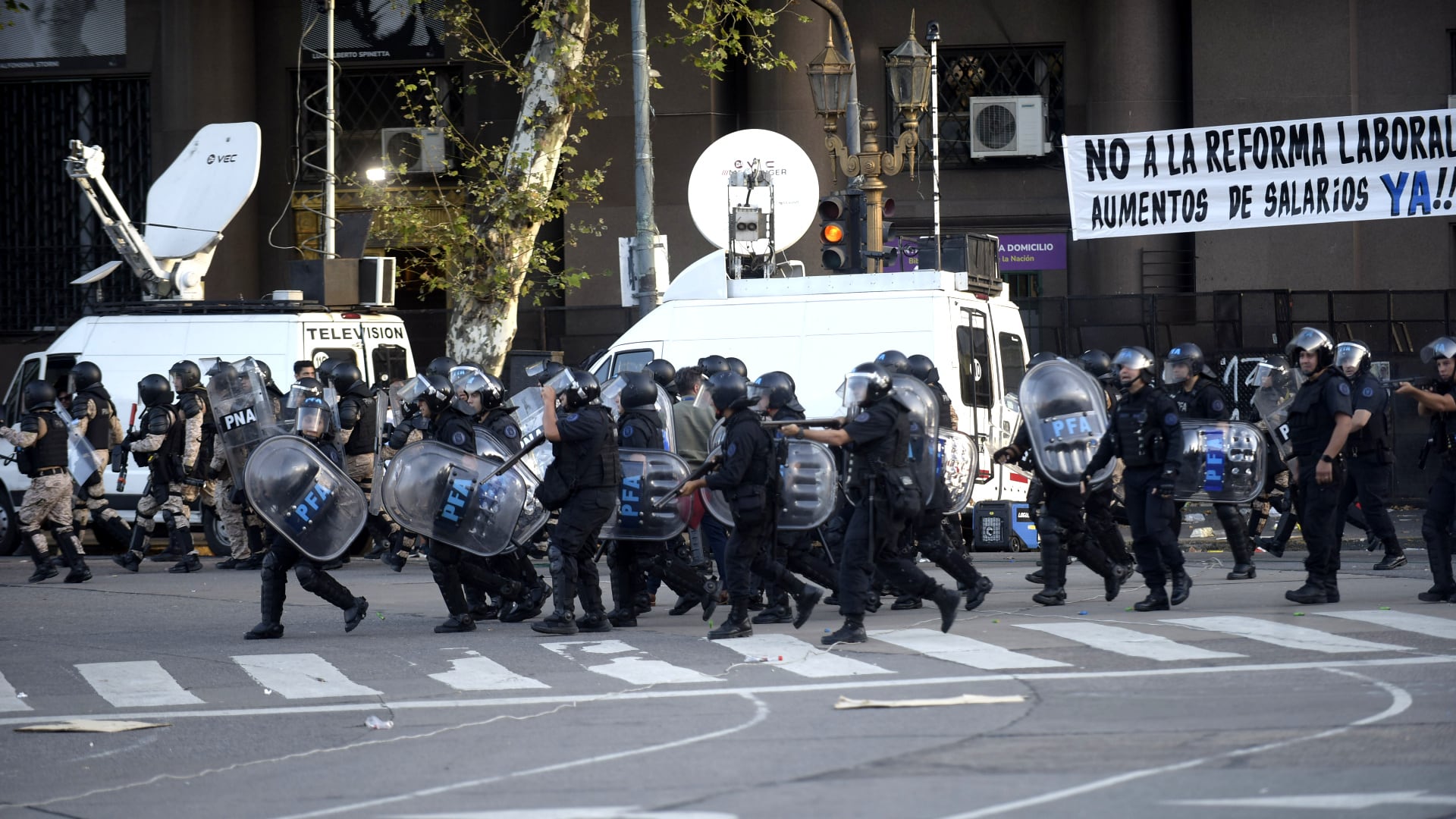 Pasadas las 18, efectivos de la Policía Federal y la Gendarmería avanzaron con la infantería para arrestar a algunos de los grupos de personas que derribaron al menos dos vallas que estaban en el perímetro del Congreso.
