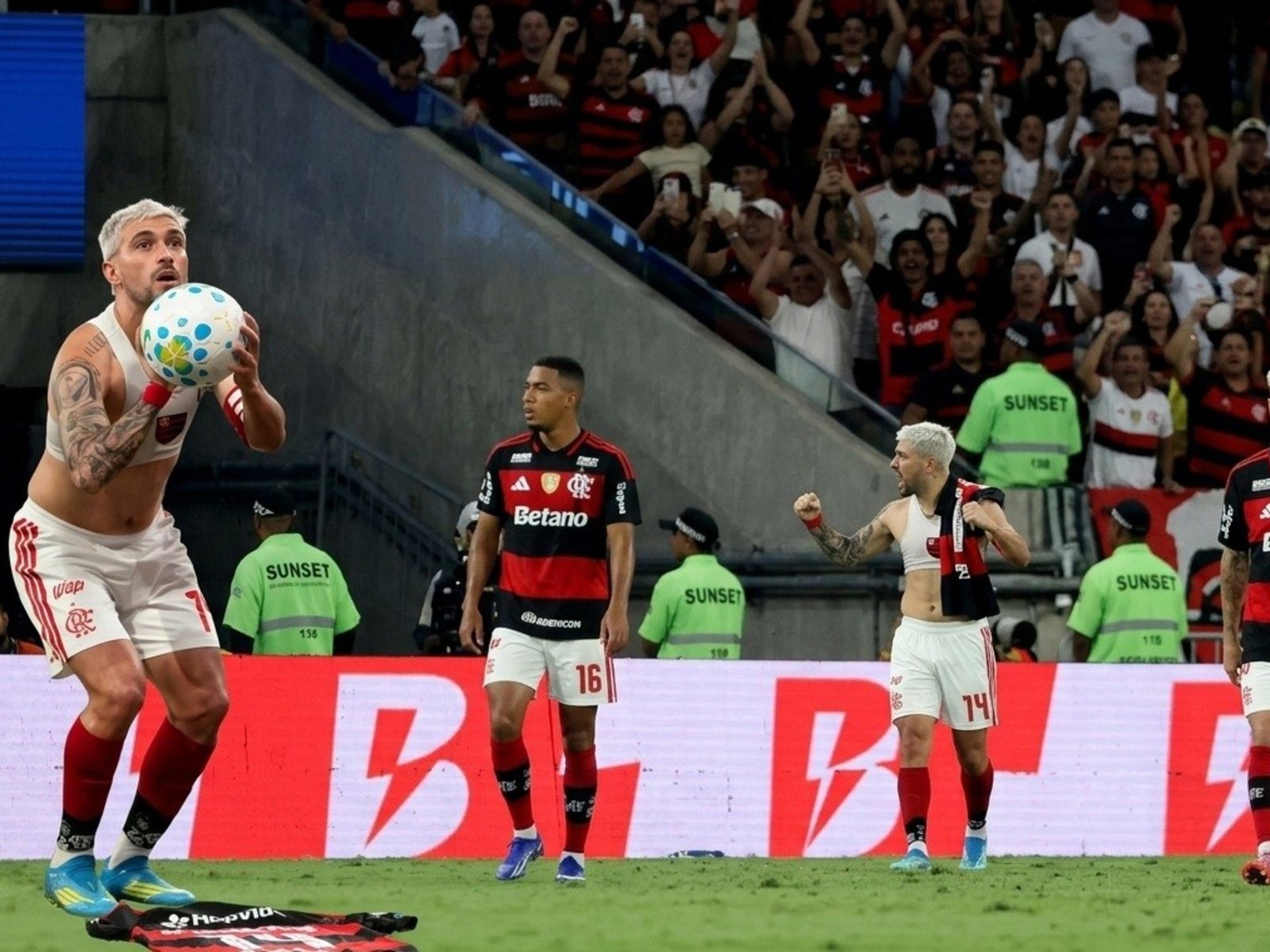 El volante ofensivo pidió jugar con la camiseta 14, la que identificó a Oscar en Fla, en vez de la 10 que utiliza habitualmente. Metió el gol del 1 a 0 y, en el festejó, mostró la casaca con ese número emblemático, y luego la cerró con un lanzamiento de un libre con una pelota que le alcanzaron, la prenda en el piso.