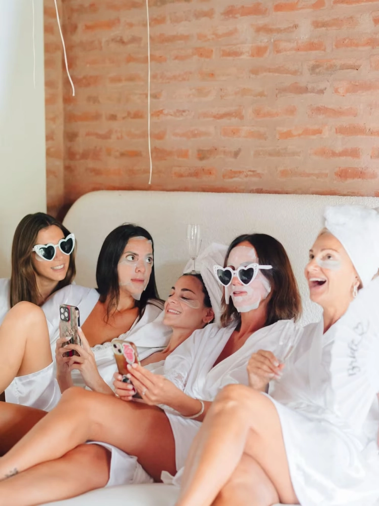 La mañana también incluyó un verdadero ritual de belleza. En distintas imágenes se las pudo ver con mascarillas faciales, mientras conversaban, se sacaban selfies y revisaban sus celulares entre risas y charlas sobre el gran momento que estaba por llegar.
