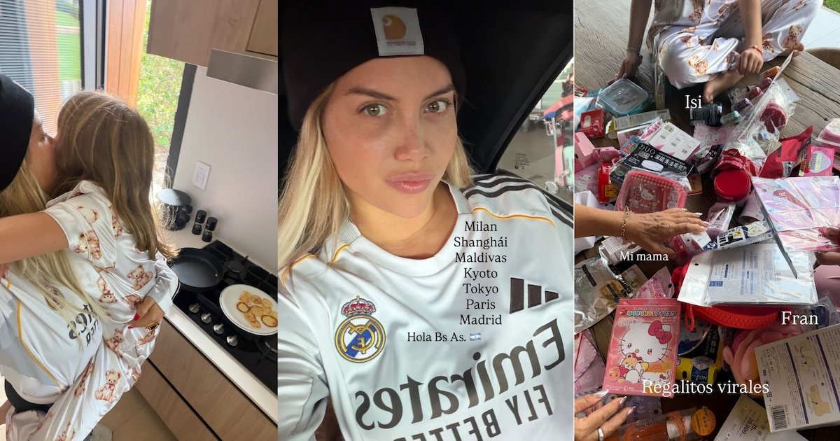 La vuelta a casa también incluyó escenas cotidianas, como la foto en la que Wanda abraza a una de sus hijas en la cocina mientras prepara panqueques, y otra donde se ve una mesa repleta de souvenirs y objetos importados bajo la leyenda “Llegó mamá”. Cada imagen retrató la alegría de volver a compartir los pequeños momentos diarios, entre abrazos, desayunos y juegos, y el rol central de la familia en medio de la exposición mediática.