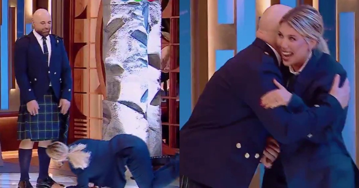 El juego de miradas y las bromas siguieron escalando, hasta que Wanda Nara decidió ir más allá. Se desplazó sigilosamente por el piso con la intención de descubrir si Martitegui seguía la costumbre escocesa. Entre risas y gritos, exclamó: “¡No tiene, me parece!”, al tiempo que Martitegui reaccionó con rapidez, alejándose antes de que pudieran comprobarlo y sellando el momento con un abrazo entre risas a la conductora.