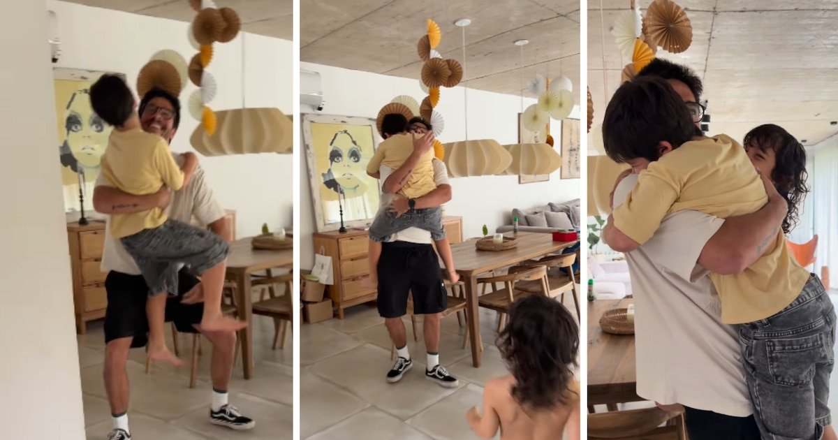 El video muestra a Bauti entrando al living de la casa, donde Toro corre a su encuentro y se cuelga de su cuello en un abrazo cargado de emoción. Belisario se suma a la escena y la alegría se multiplica en el reencuentro, con risas, besos y gestos de cariño que dejan atrás cualquier resquemor reciente. El clima festivo, con decoraciones colgantes y juguetes repartidos en el ambiente, refuerza la atmósfera de bienvenida y celebración. “¿Cómo andan sabandijas?“, se lo escucha decir a Lena mientras abraza a sus dos sobrinos.