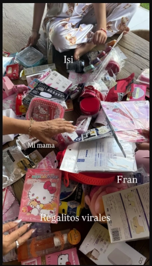 El reencuentro estuvo marcado por la emoción y los rituales familiares. Wanda se dedicó a repartir los regalos y productos que trajo de su viaje, especialmente para sus hijas. Una imagen muestra a Isabella y Francesca, junto a su abuela Nora, rodeadas de una montaña de “regalitos virales”: sets de Hello Kitty, maquillaje, cremas, artículos de belleza y cosmética coreana, todos cuidadosamente elegidos para sorprender a las niñas. El pie de foto “Regalitos virales” puso el foco en el furor por los productos trendy y coleccionables que Wanda suele traer del exterior.