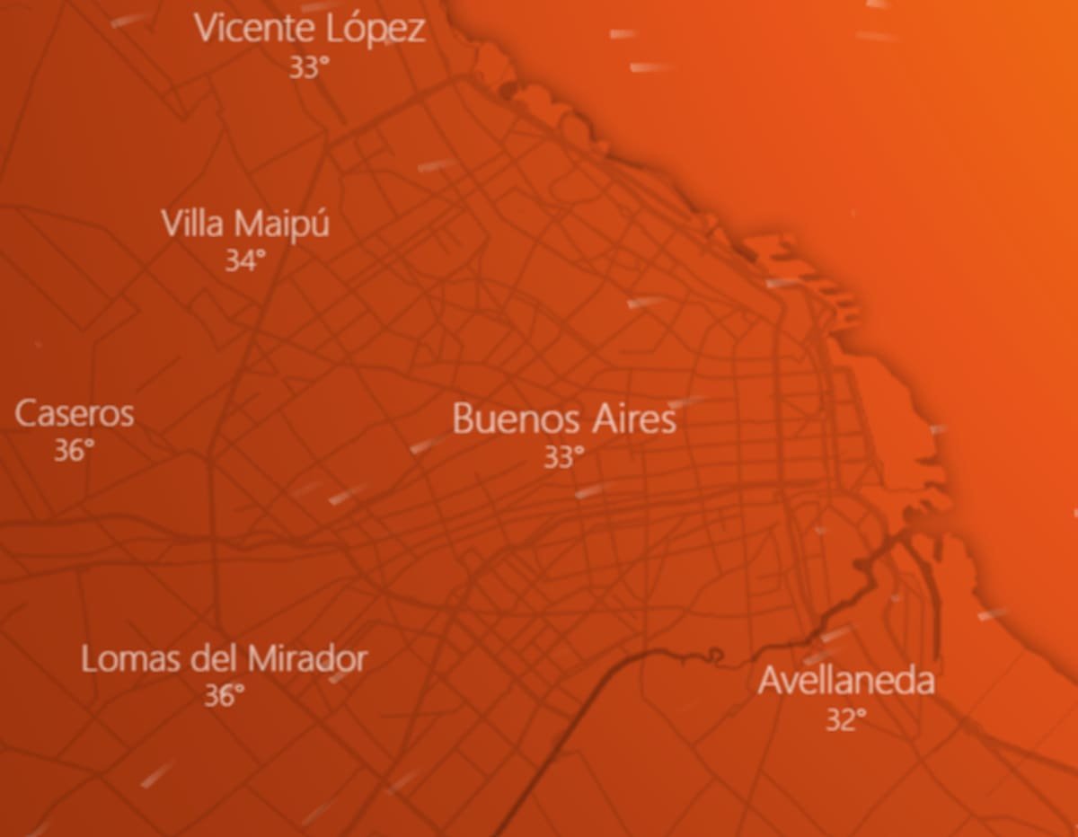 El Servicio Meteorológico Nacional anticipa temperaturas extremas en el AMBA durante los primeros días de la semana, que pueden llegar a rozar los 40°C de máxima. Sin embargo, a partir de la madrugada y mañana del jueves el calor cederá con el ingreso de ráfagas de viento, que ofrecerán una mínima de 19°C. A partir de ese día, las máximas rondarán los 30°C. A su vez, no hay probabilidades de lluvias en los próximos días.
