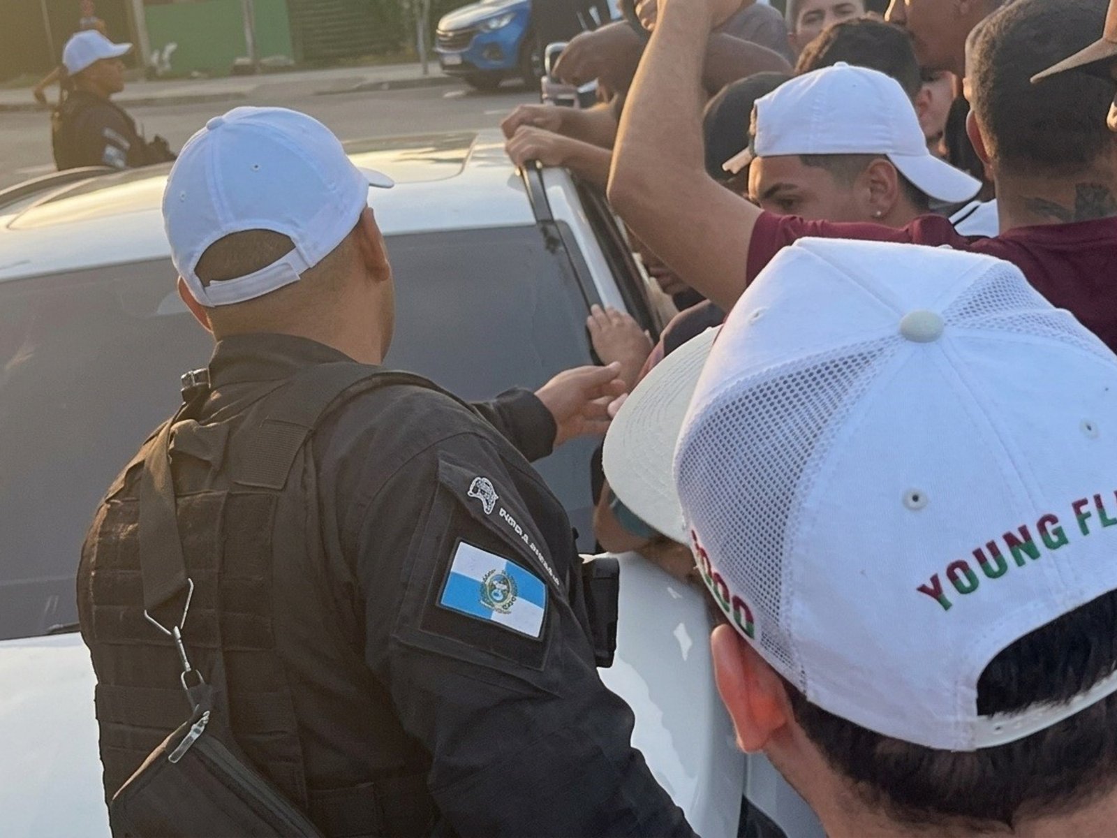 Posteriormente, el grupo fue recibido en la entrada del centro de entrenamiento para una reunión con el presidente Mattheus Montenegro, el vicepresidente Ricardo Tenório y cuatro jugadores: Samuel Xavier, Renê, Martinelli y Canobbio.
