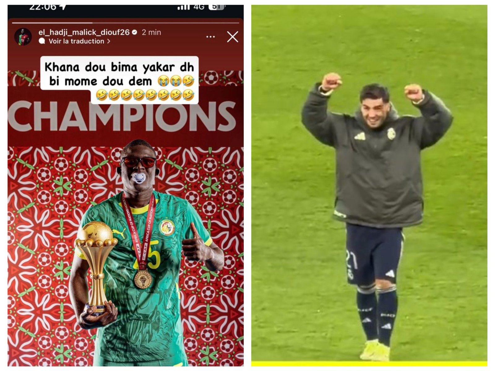 El posteo de Diouf transmite una mezcla muy específica de orgullo, humor irreverente y celebración del éxito. El detalle más llamativo es el chupete en su boca combinado con las gafas de sol. En el fútbol africano el uso del chupete suele ser un «mensaje» para los críticos o rivales. Transmite la idea de: «Soy el más joven/el nuevo, pero ya gané».