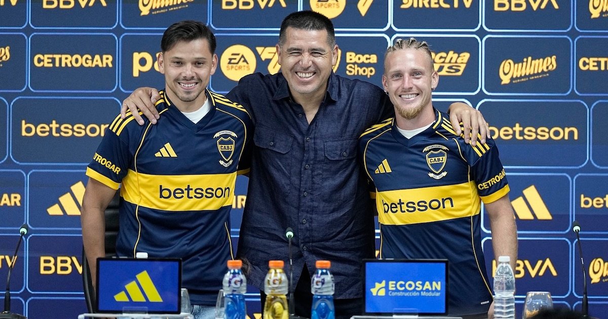 Entrada la noche, ambos fueron presentados por el presidente del club, Juan Román Riquelme, y brindaron una conferencia de prensa en el estadio. “Estamos felices. Mucha suerte a Ángel, que la pase bien como la pasó su hermano. A Santi, que creo que su familia debe estar muy contenta”, dijo el máximo dirigente de la entidad.