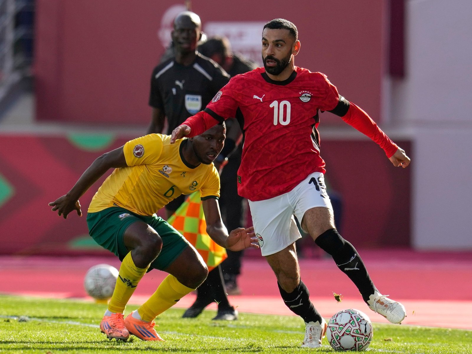 En el segundo encuentro de la jornada, Egipto chocó contra Sudáfrica; un duro contrincante que acudirá a la próxima cita mundialista. El cotejo tenía una gran expectativa. Sin embargo, finalmente, fue un enfrentamiento cerrado. Los Faraones ganaron 1-0 gracias a un penal de Mohamed Salah y sellaron el pase a los octavos de final.