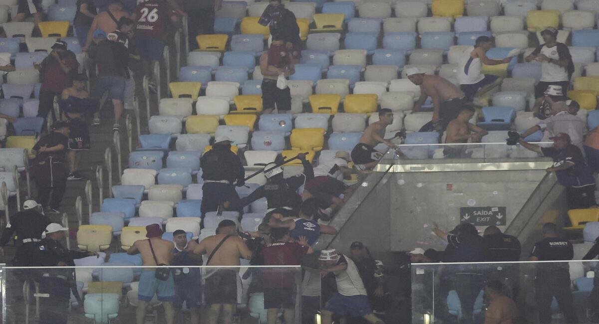 La Policía brasileña intervino entonces para calmar los ánimos y reorganizar a la hinchada del Lanús. Aún se desconoce si hubo heridos en los altercados.