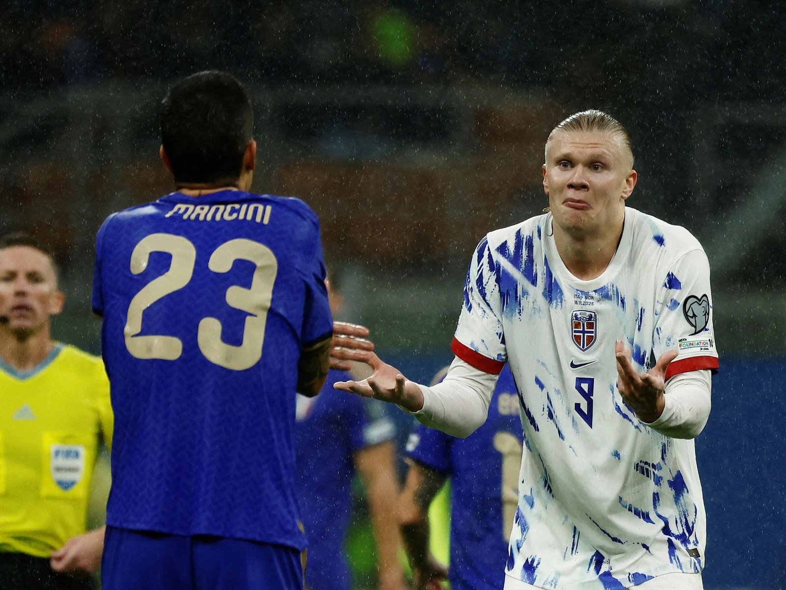 Tras el partido, el delantero del Manchester City reveló que jugó con una motivación extra. Italia formó con una línea de tres defensores: Di Lorenzo, Bastoni y Mancini. Y fue con Gianluca Mancini con quien el Androide tuvo un cruce picante. En diálogo con el canal noruego TV2, Haaland sorprendió con su explicación: » Me tocó el culo«.