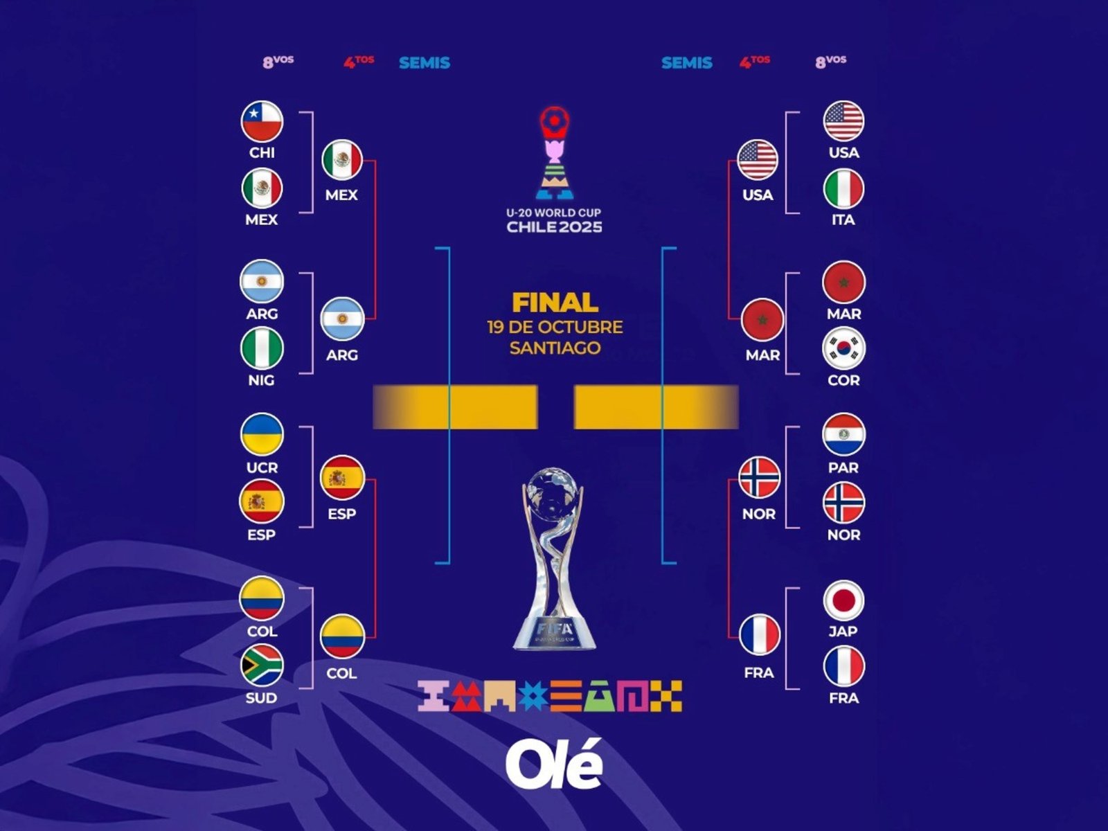 La llave del Mundial Sub 20: Colombia primer semifinalista y el camino de Argentina