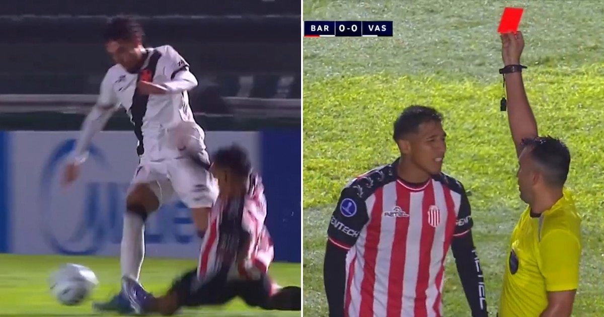 La patada por la que fue expulsado un jugador de Barracas al minuto de ingresar en el empate ante Vasco da Gama por la Sudamericana