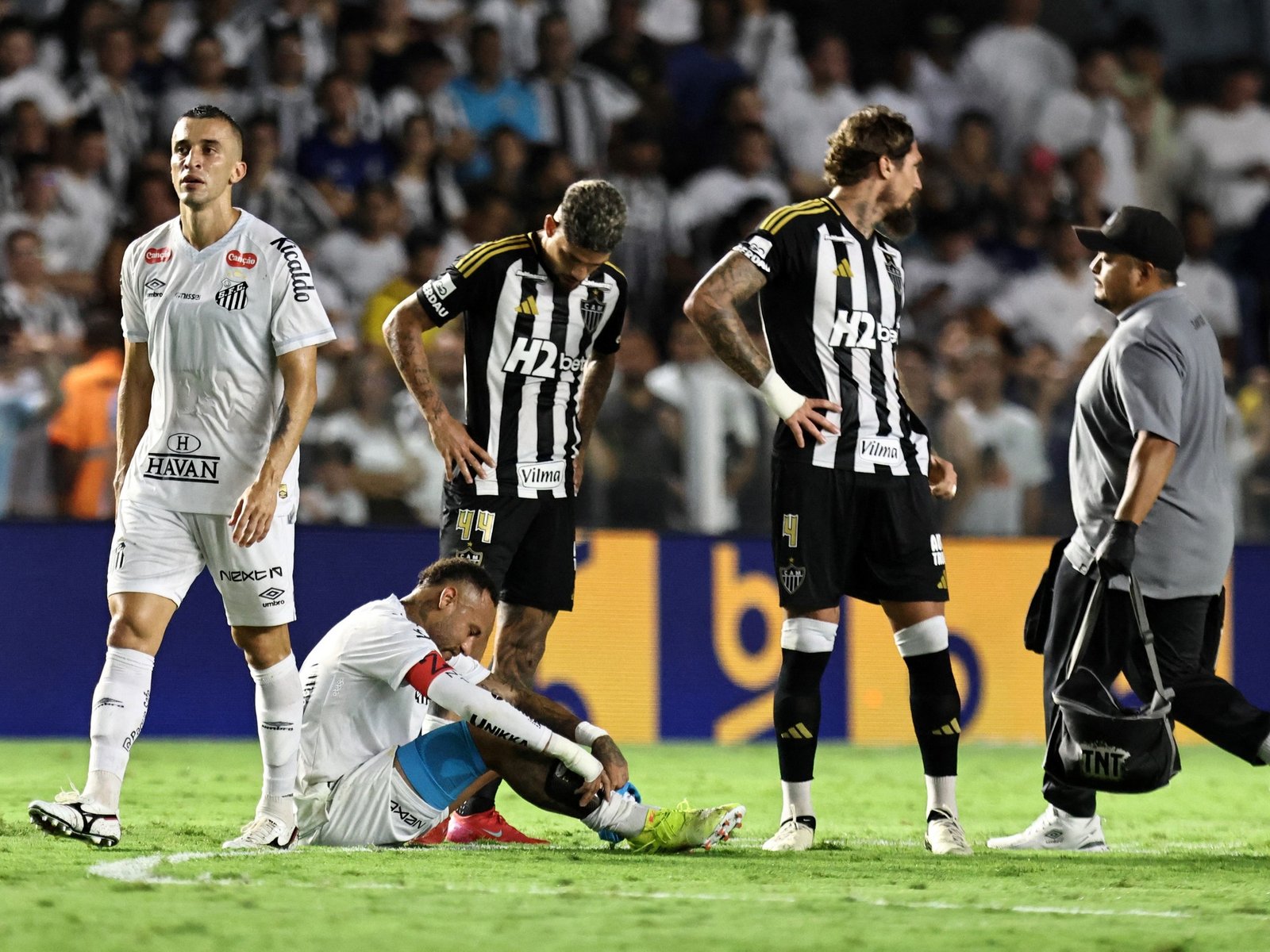 Y es que fue 1-1 en el Arena MRV, por lo que ambos sumaron apenas un punto y siguen comprometidos en la zona baja de la tabla. Gomes puso el 1-0 para el local, mientras que la igualdad llegó a tres minutos del final cuando Tiquinho convirtió de penal para el Peixe. De todos modos, fue un partido accidentado ya que Gabriel Brazão, arquero de Santos, sufrió un choque con Igor Gomes, terminó desvanecido y se retiró en ambulancia. Lo bueno es que se encuentra bien y solamente fue un susto.