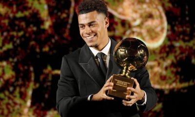 Desiré Doué, futbolista franco-marfileño del PSG, recogió este lunes el trofeo Golden Boy 2025 que entrega el diaro italiano ‘TuttoSport’, y sucedió en el ‘trono’ al...