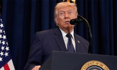 President Donald Trump speaks with reporters before departing on Marine One from the South Lawn of the White House, Wednesday, March 11, 2026, in Washington. (AP Photo/Alex Brandon)