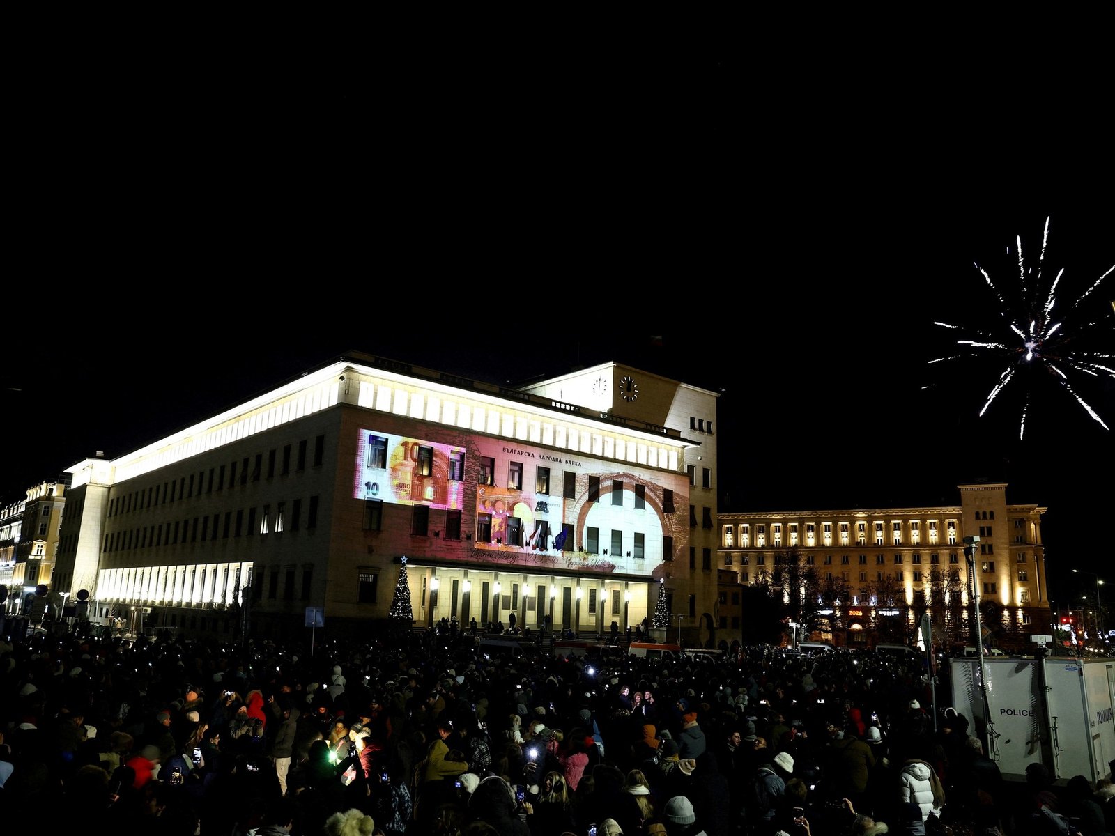 La nueva divisa tuvo una particular presentación en medio de los festejos que se realizaron en la víspera de Año Nuevo, en los que hubo proyecciones con imágenes de los nuevos billetes y monedas sobre la fachada del Banco Nacional de Bulgaria (BNB) en Sofía, la capital del país.