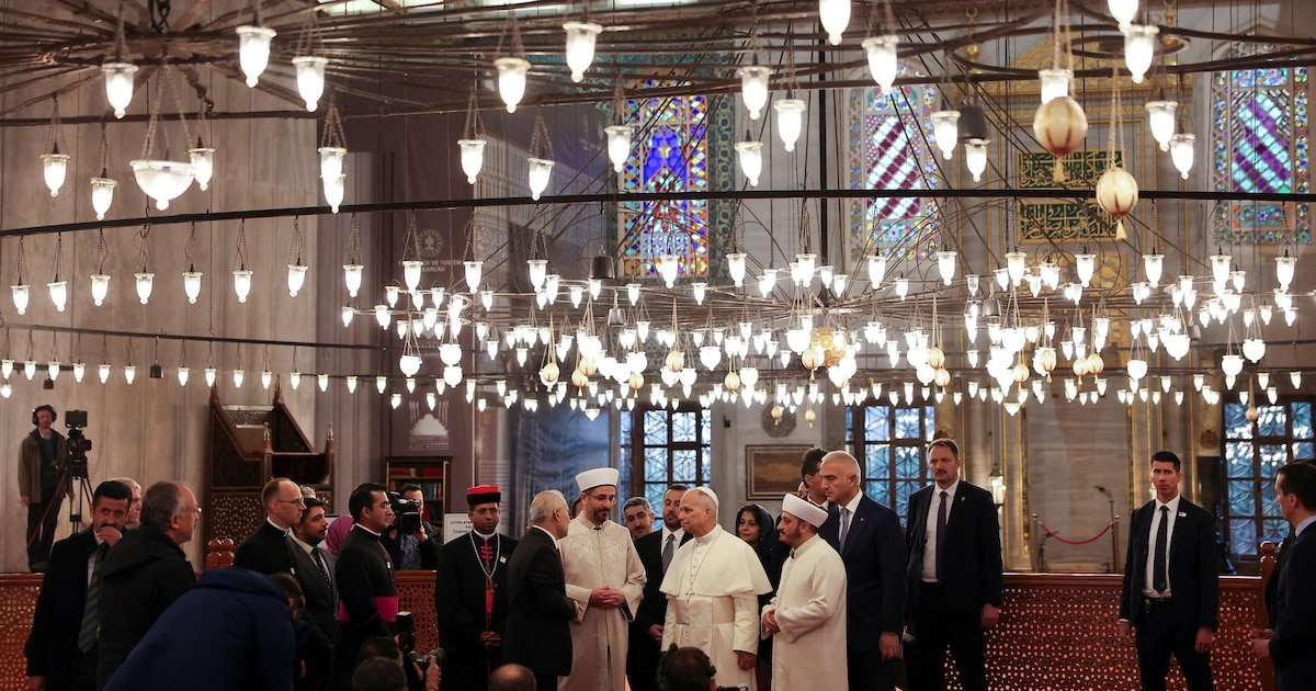 El papa León XIV, de nacionalidad estadounidense y peruana, estuvo acompañado durante su visita por Ali Erbas, presidente de la Dirección de Asuntos Religiosos de Turquía (Diyanet). Con este gesto, León XIV se convierte en el cuarto papa en ingresar a una mezquita y el tercero en hacerlo en la Mezquita Azul de Sultan Ahmed