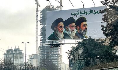 A billboard depicting Iran’s supreme leaders since 1979 is displayed above a highway in Tehran on March 10, 2026. Iran marked the appointment of Mojtaba Khamenei to replace his father as its supreme leader on March 9, 2026. (AFP via Getty Images)