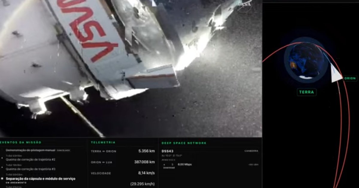 Hace un minuto, la cápsula Orión se desacopló del módulo europeo de servicio y revelando el escudo térmico. La tripulación se prepara para el reingreso atmosférico y entrar a la Tierra a 40.000 km/h.