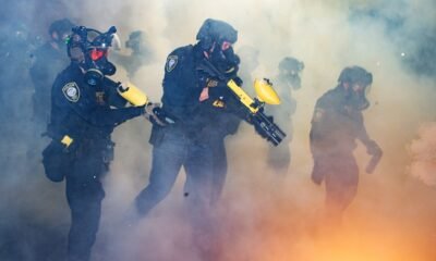 U.S. Immigration and Customs Enforcement agents deploy pepper balls, tear gas, and flashbang grenades as hundreds of protesters march from Portland City Hall to an ICE facility in Portland, Oregon, on Feb. 1, 2026. (Sean Bascom/Anadolu via Getty Images)