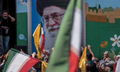 Iranian worshippers hold up their hands as signs of unity with Iran’s Supreme Leader, Ayatollah Ali Khamenei, during an anti-Israeli rally to condemn Israel’s attacks on Iran, in downtown Tehran, Iran, on June 20, 2025. (Morteza Nikoubazl/NurPhoto via Getty Images)