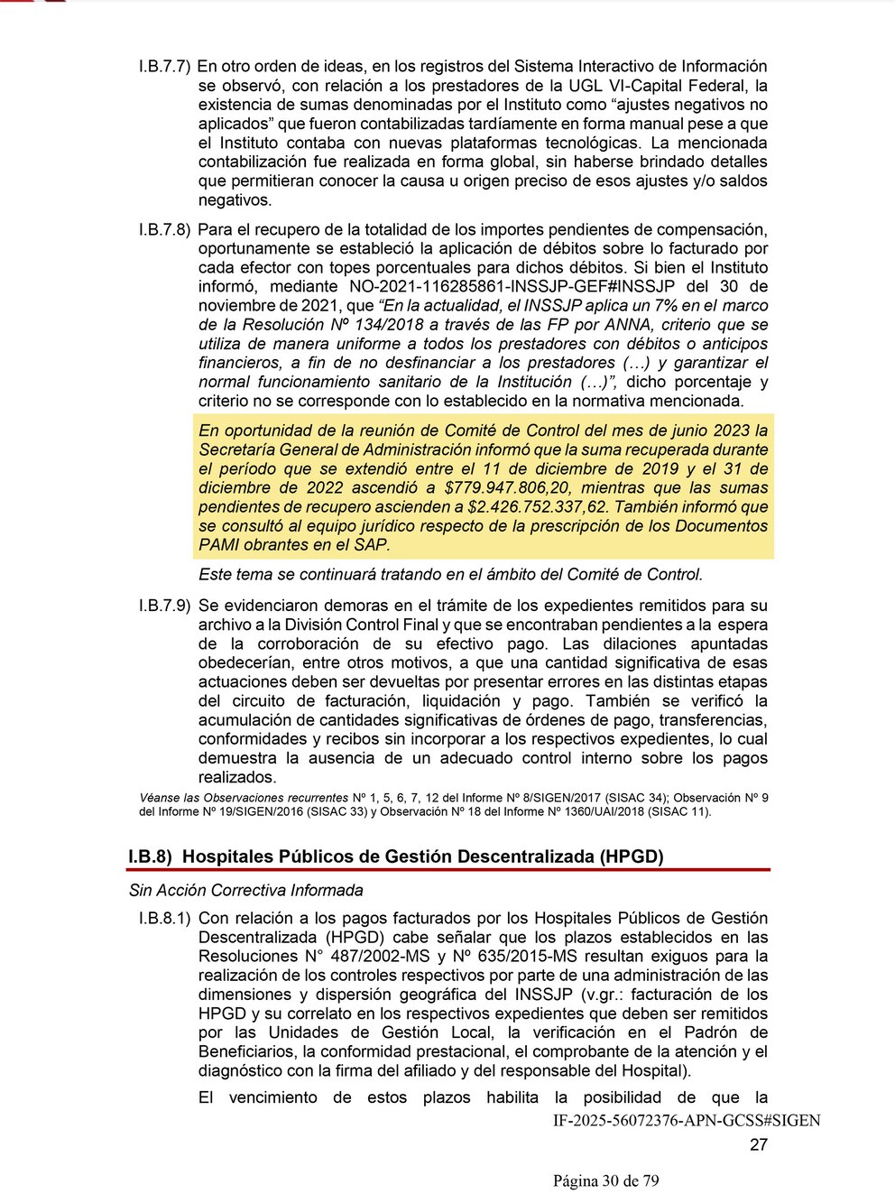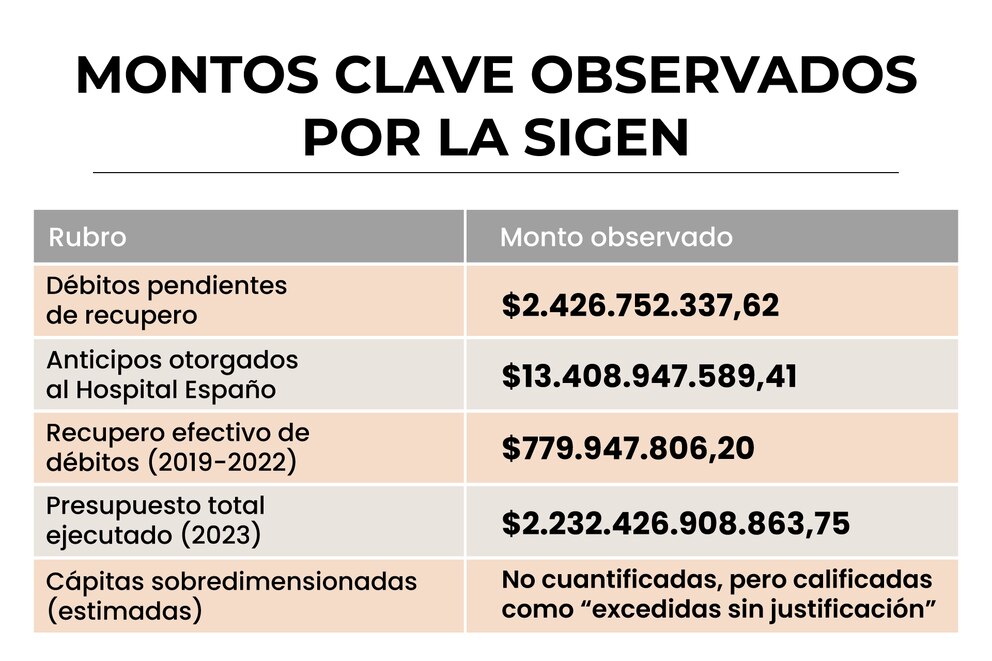 Entre las anomalías destacadas por la SIGEN se encuentran pagos a prestadores médicos sin facturación electrónica válida, validaciones omitidas en el sistema SAP y una acumulación de expedientes sin archivar ni auditar. También se detectaron irregularidades graves en el área de Salud Mental y Discapacidad, que debería haber sido una de las prioridades del instituto, según el propio relevamiento.