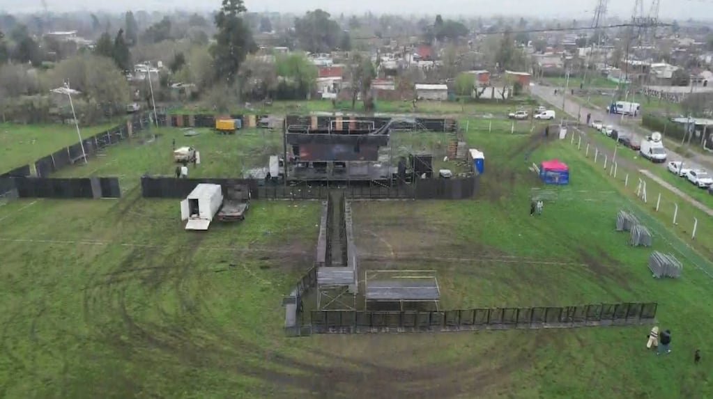 En un móvil de TN, se pudieron ver bolsas de arena y piedras a los costados del club, que podrían funcionar como ayuda para una mejor circulación en la zona. El escenario está montado dentro de la cancha de fútbol.