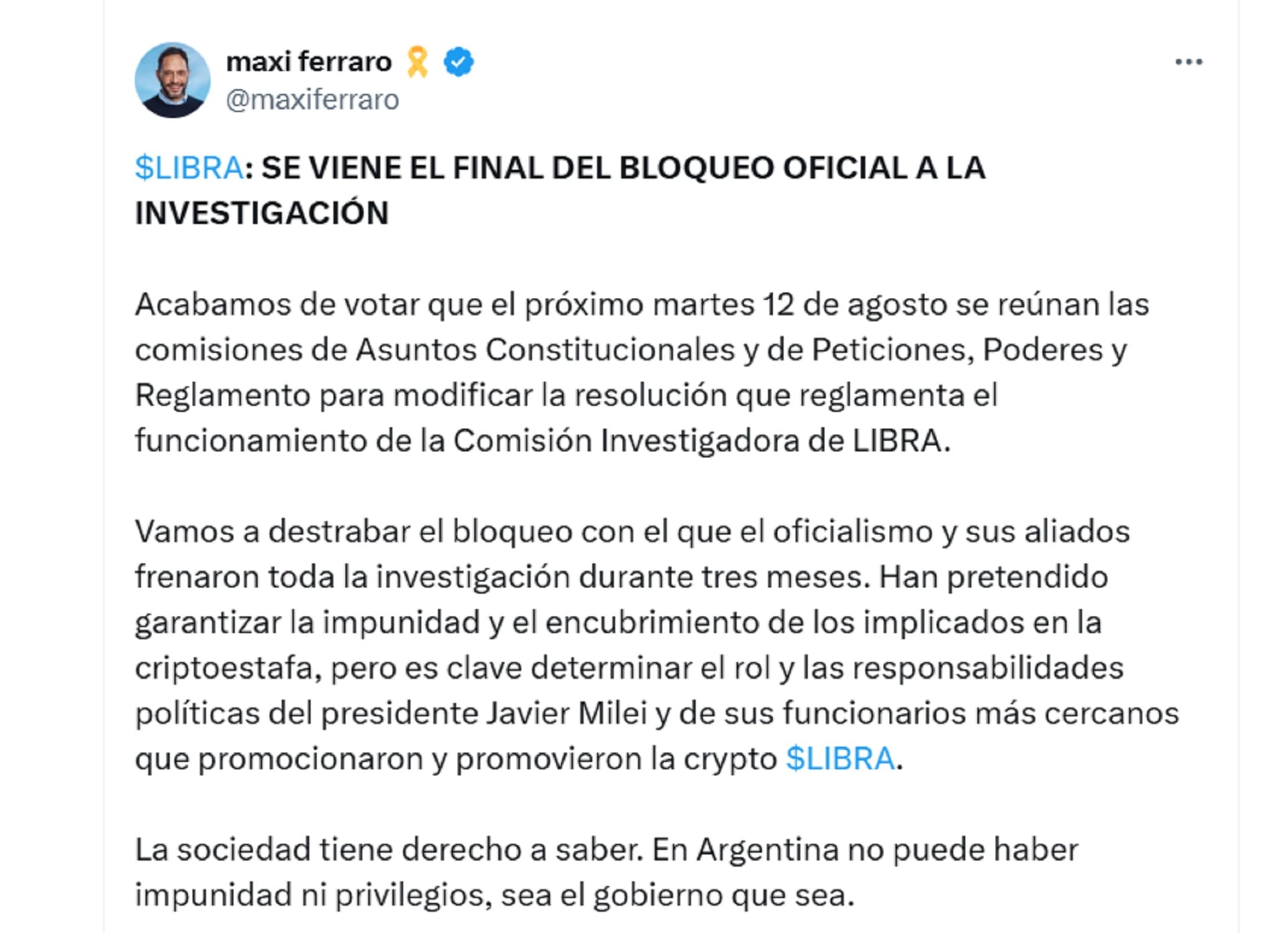 La comisión creada para investigar la operatoria y los eventuales vínculos políticos y empresariales detrás de la criptomoneda $Libra quedó desde el inicio frenada por las maniobras del oficialismo y la falta de acuerdo sobre la presidencia.