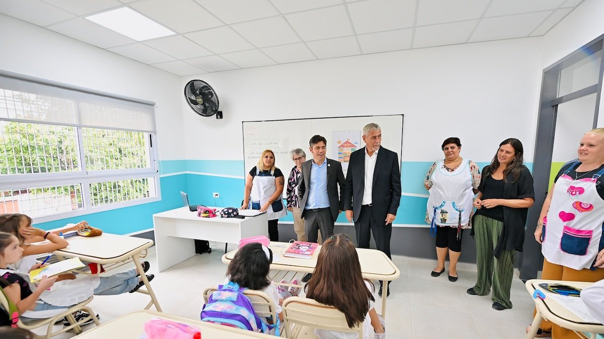 Kicillof destacó: “Estamos comenzando las clases en un momento en el que el gobierno nacional no sólo se retiró de sus responsabilidades, sino que además intenta asfixiar a las provincias. Aun así, en la provincia de Buenos Aires seguimos apostando a más escuelas, más inversión y más futuro”.