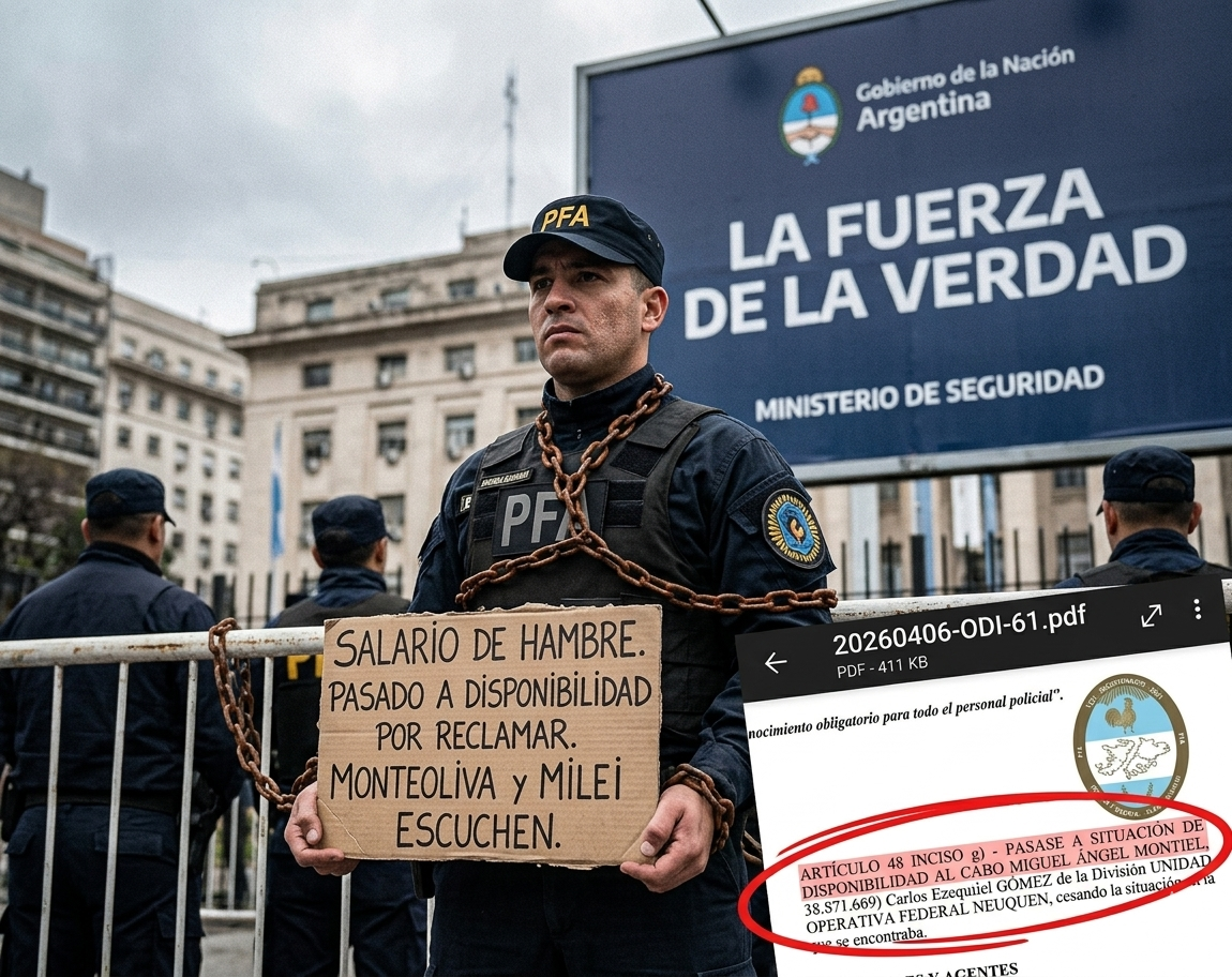 La política de «motosierra» del gobierno de Javier Milei ha encontrado un nuevo límite: el hambre y la desesperación de quienes deben garantizar la seguridad. Lo que comenzó como un grito de auxilio de un efectivo policial que llegó al extremo de encadenarse para visibilizar la miseria salarial, terminó con la firma de un documento oficial que huele a persecución.