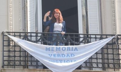 🇦🇷 Cristina Kirchner vioIa los acuerdos de su prisión domiciliaria saliendo a su balcón colgando una bandera política para movilizar a su militancia en la marcha del Día de la Memoria por la Verdad y la Justicia.