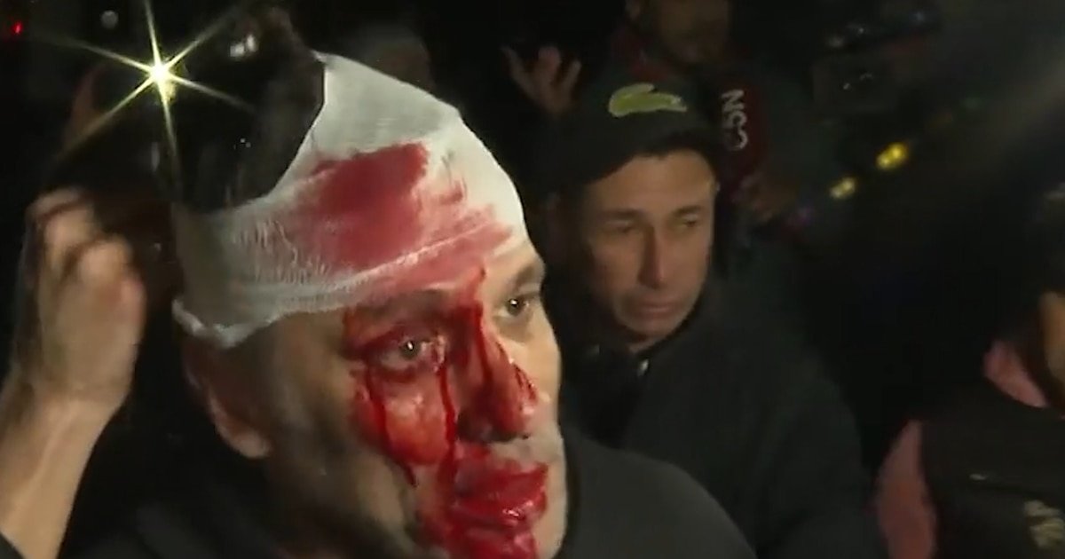 “Estaba haciéndole una entrevista a los encapuchados que estaban ahí y me dieron un botellazo. No tengo ni idea quién fue. Yo fui a preguntarles si eran personal policial porque la gente estaba enojada con ellos y no me contestaron. Cuando me di vuelta, me cayó algo que me dejó así. No tengo ni idea de quién me pegó, no quiero echar culpas porque tenía mucha gente alrededor y no vi quién me pegó. Estoy bien, ahora me voy a atender”, le narró lo sucedido Mercatante al resto de la prensa, mientras la sangre manaba de su cuero cabelludo y le caía por el rostro.