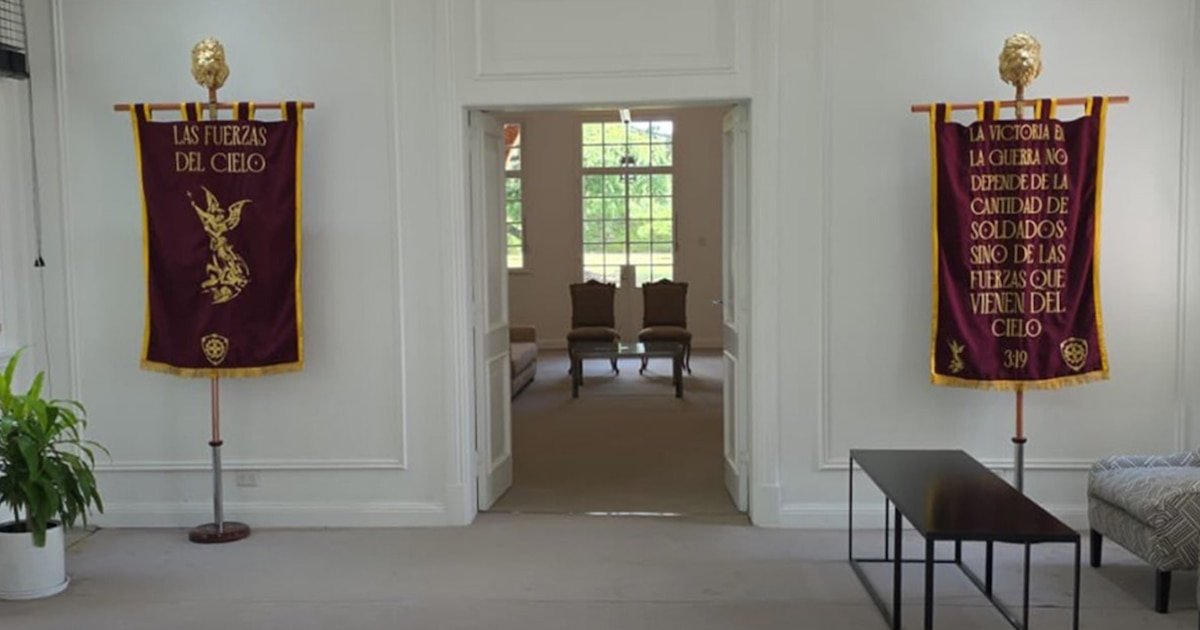El presidente Javier Milei instaló los estandartes de estilo romano de la agrupación «Las Fuerzas del Cielo» en la Quinta de Olivos. Fue un gesto que compartió en sus redes sociales, y que expone su apoyo a uno de los sectores militantes del movimiento juvenil libertario.