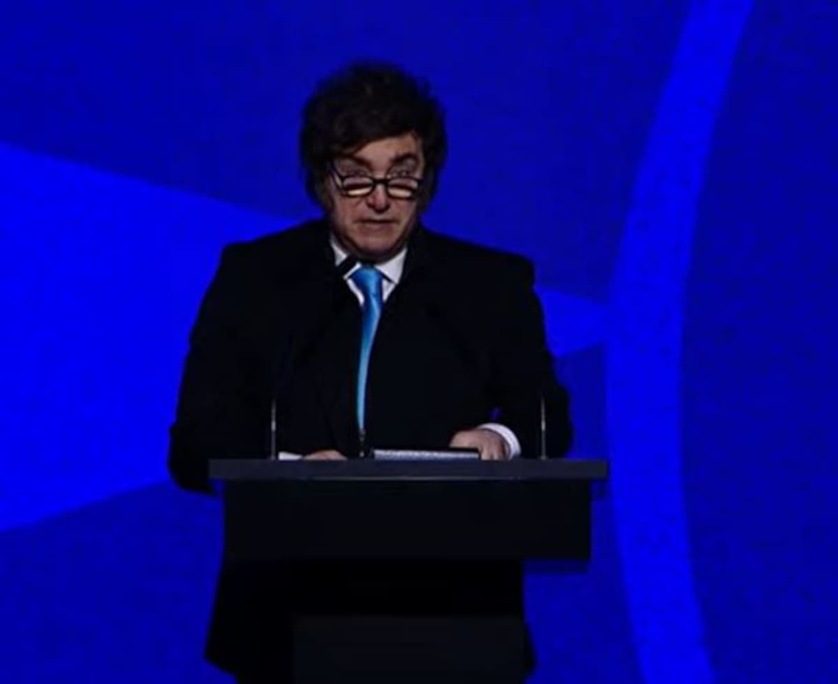 Milei ingresó con su canción de cabecera, Panic Show, de La Renga, y abrió su discurso haciendo alusión al atentado de Australia de este domingo, sobre el cual aseguró: “Quiero expresar mi solidaridad con la comunidad judía en la Argentina y en el mundo, en un contexto en el que el antisemitismo encuentra expresiones cada vez más aberrantes. Esta amenaza trasciende al pueblo judío, en tanto se trata de una afrenta contra la libertad misma. Son asesinos que están dispuestos a matar por sangre fría por unas diferencias”.