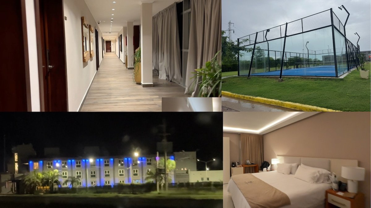 “Queremos agradecer enormemente a todo el personal del prestigioso Hotel Deluxe por una estancia agradable y un trato diferencial para con nuestra institución“, reza la última nota, fechada el 24 de enero de este año, del libro de recomendaciones del HT Hotel. La carta fue firmada por Oscar Mirkin, el presidente del Club Atlético San Martín de Tucumán. Es una retrato de quienes frecuentan el lujoso alojamiento sobre la ruta 9 en Santiago del Estero. No está ni cerca del centro, ni cerca de Termas de Rio Hondo. Queda a unos 15 minutos del Estadio Único Madre de Ciudades, el cual se puede ver desde la terraza del 2do piso.