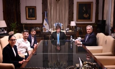 El presidente Javier Milei, recibió en Casa Rosada a dos argentinos que fueron rehenes de Hamas durante más de dos años. Se trata de David y Ariel Cunio, quienes habían sido secuestrados por la organización extremista en un kibutz de Israel el 7 de octubre del 2023.