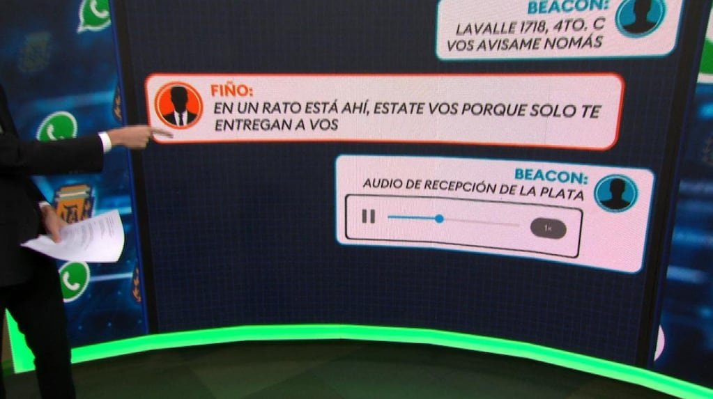 El intercambio, fechado el 24 de febrero de 2022, muestra cómo ambos coordinan el envío de 220.000 dólares. En la conversación, Beacon avisa que enviará el dinero y minutos después Toviggino responde que el intermediario que lo trasladó sólo había entregado 120.000 dólares, lo que deriva en un nuevo envío con los 100.000 dólares restantes.