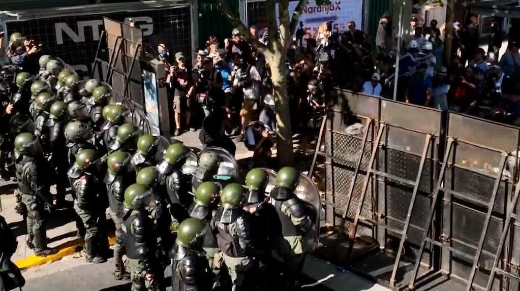 Los manifestantes voltearon las vallas y se enfrentaron a los empujones con los efectivos de la Policía Federal y Gendarmería que estaban en el lugar para hacer cumplir el protocolo antipiquetes.