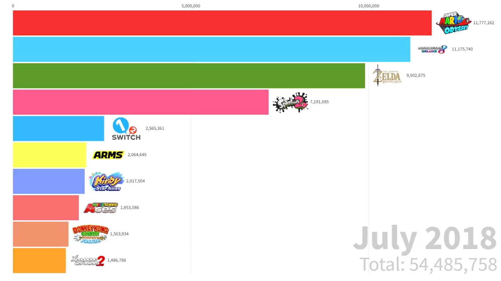 Esta vez hemos podido nechar un vistazo a un vídeo que muestra cómo evoluciona el gráfico del top 10 de juegos más vendidos de Nintendo Switch desde 2017 en su lanzamiento hasta 2025. Lo podéis ver abajo: