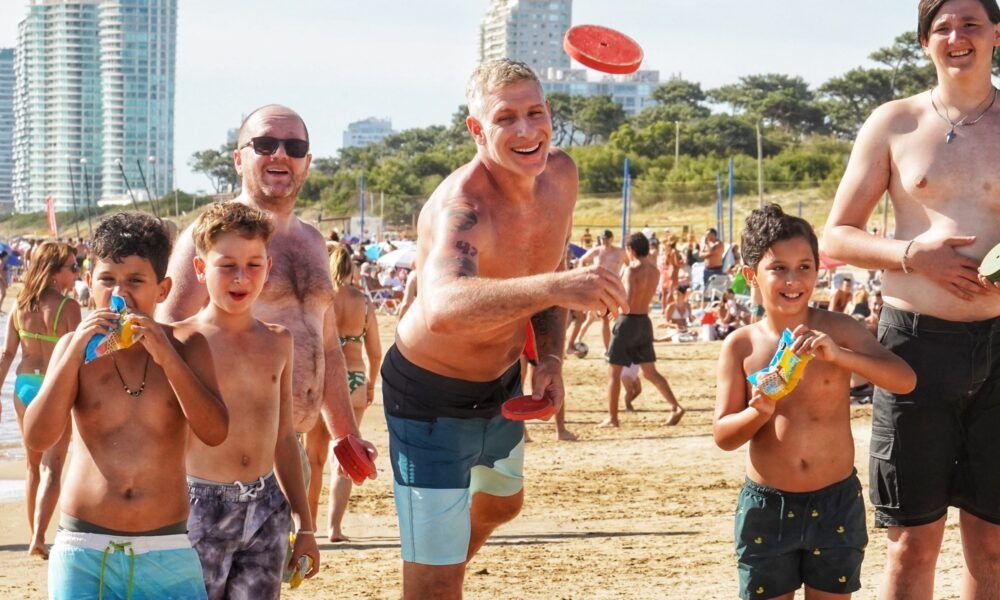 06/01/2026 18:45hs. Martín Palermo disfruta de sus vacaciones en Punta del Este. Este martes estuvo en playa Mansa, jugando al tejo con uno de sus hijos...