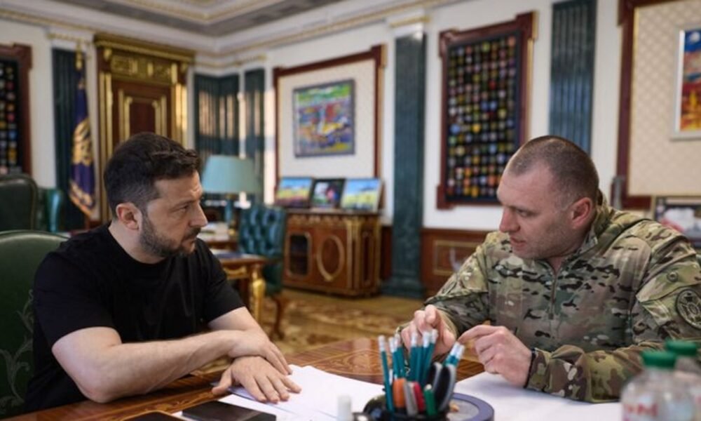 El presidente de Ucrania, Volodímir Zelensky, y el jefe del Servicio de Seguridad de Ucrania, Vasyl Maliuk, asisten a una reunión, en medio del ataque de...