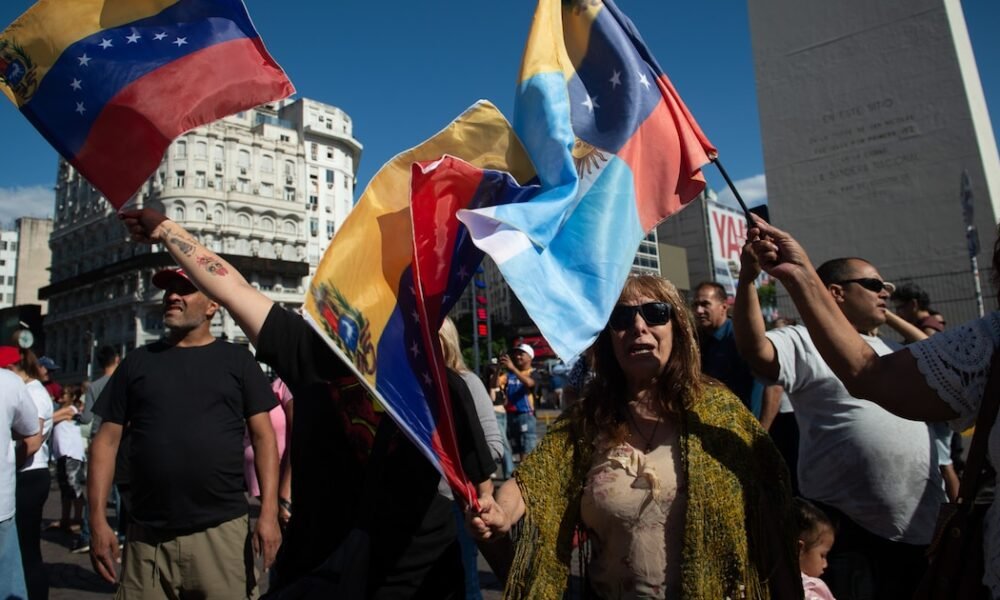 Cientos de venezolanos residentes en Argentina se congregaron este sábado en las inmediaciones del Obelisco de Buenos Aires, portando banderas, gorras tricolores y carteles con mensajes...