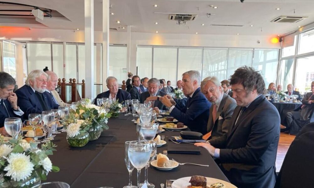 El presidente Javier Milei, en un almuerzo con importantes empresarios de diversos rubros Por más diezmada que haya quedado para que pueda reunir los suficientes consensos...