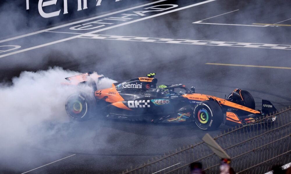 Formula One F1 – Abu Dhabi Grand Prix – Yas Marina Circuit, Abu Dhabi, United Arab Emirates – December 7, 2025 McLaren’s Lando Norris celebrates after...